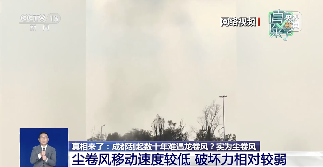 中国气象局高级工程师戴云伟表示,这是尘卷风。尘卷风和龙卷风看似有点像,但并不是一回事。尘卷风从地面向上发展,移动速度跟我们平时骑自行车的速度差不多,造成的危害一般较小;而龙卷风是从天空伸展到地面,移动速度快,破坏性巨大。